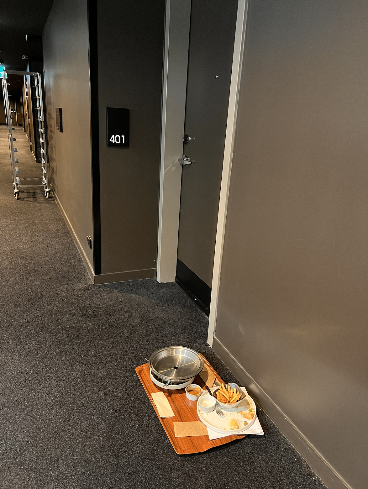 After finalising some work, by mid-afternoon, approximately 3.00pm, I entered my room once again to find it still had not been made up. There was clearly no planning to the housekeeping services. They just did rooms randomly, leading to a complete lack of co-ordination and non-timely work performed. Those awful room service trays of half-finished food were dumped outside many rooms on many levels, all with uneaten piles of chips on display, smelling out the corridors. They may have been there for hours.